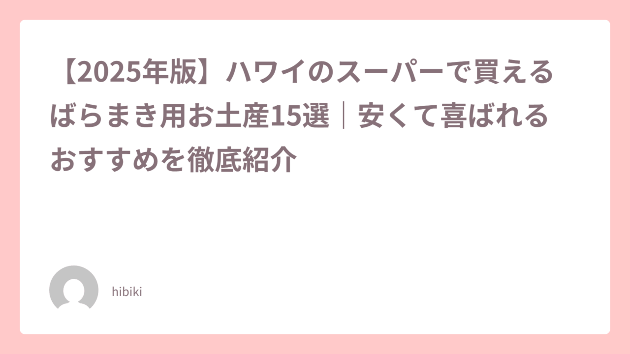 「コスパ良し・喜ばれる・ハワイ感あり」の3点を意識すれば、失敗しないお土産選びができます。